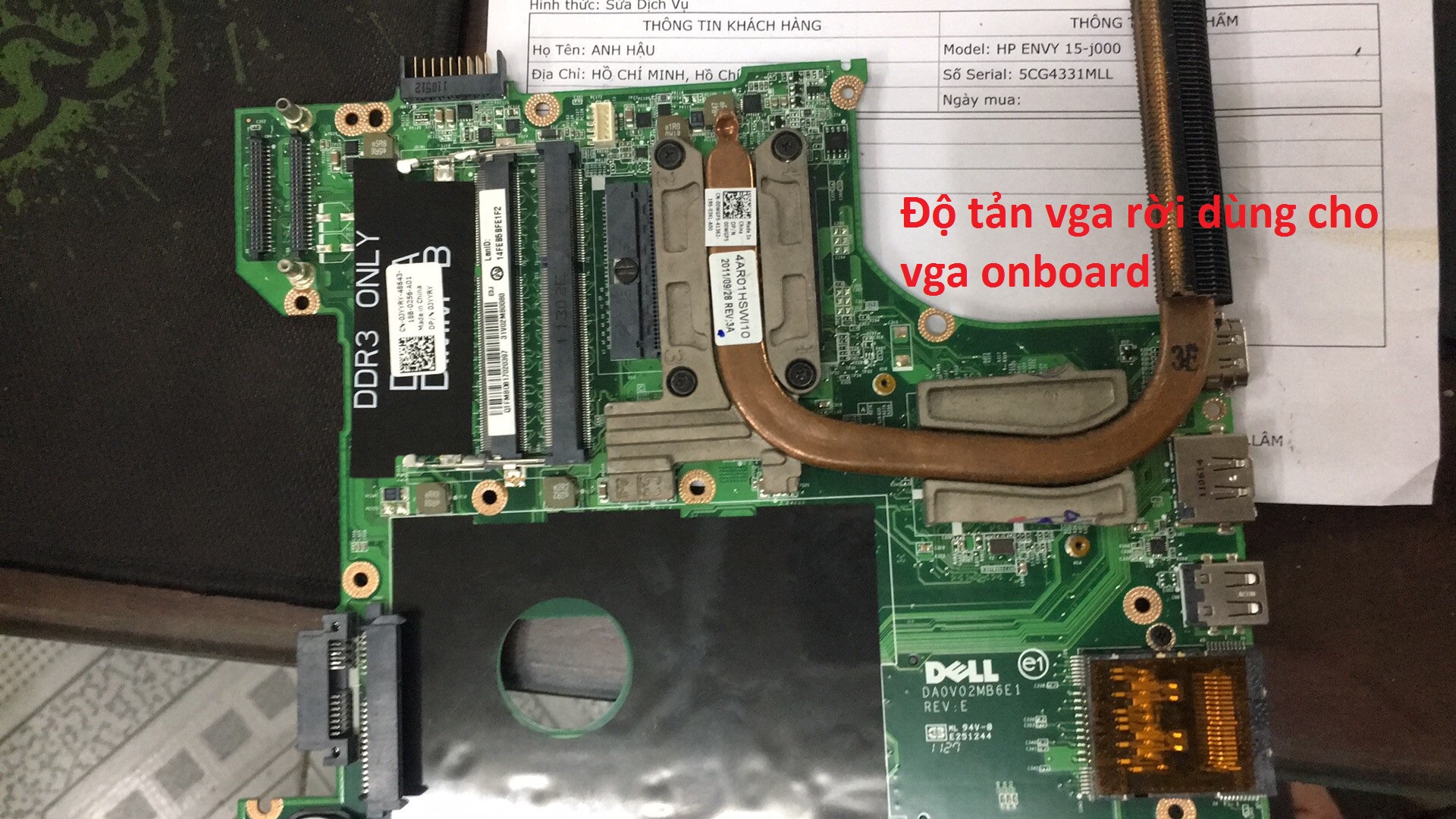 Hình ảnh độ tản nhiệt từ main vga rời sang tản dùng chung cho vga onboard